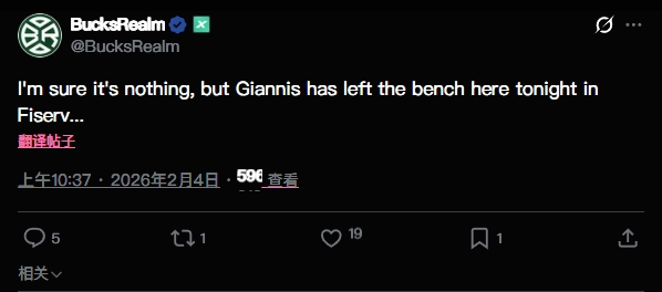 要来了?雄鹿自媒体:在场边观战的字母哥刚刚离开了球队替补席