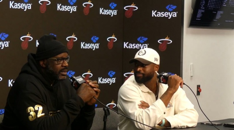 2月4日讯 奥尼尔和韦德出席热火夺冠20周年纪念活动新闻发布会。