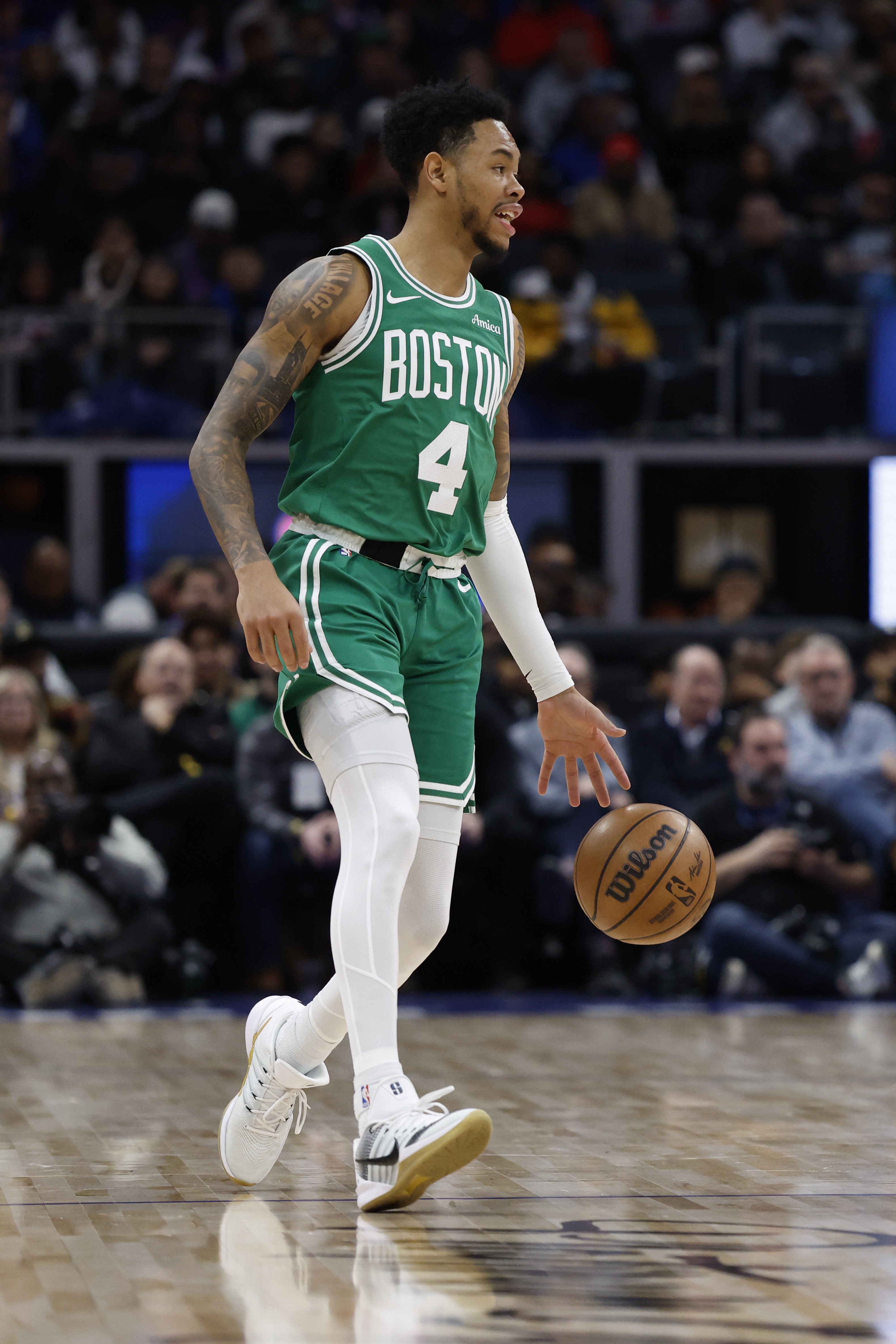 尽管西蒙斯在替补角色中的数据全面下降,此前三个赛季他在开拓者一直是首发球员,但凯尔特人在西蒙斯上场时表现良好。根据Cleaning the Glass的数据,凯尔特人在西蒙斯与首发后卫普理查德或德里克·怀特同时在场时,进攻效率比普里查德和怀特两人同时在场时更高。