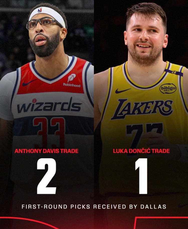 2月5日讯 据ESPN名记Shams Charania报道,安东尼·戴维斯被独行侠交易去奇才,他们将浓眉、哈迪、拉塞尔以及埃克萨姆送去奇才,换来米德尔顿、AJ·约翰逊、布兰纳姆、巴格利、2个首轮签和3个次轮签。值得一提的是,在今天的安东尼·戴维斯交易中,独行侠获得了两个首轮选秀权,比去年二月交易卢卡·东契奇时多一个。