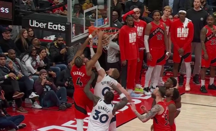 毫厘之间!奎克利抛投涮出巴恩斯补扣被吹干扰球 猛龙挑战失败
