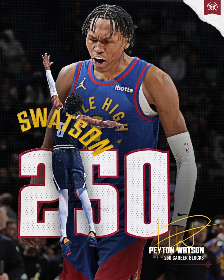 2月5日讯 今天一场NBA常规赛,掘金对阵尼克斯。上半场掘金球员沃特森送出1记封盖,至此,他的生涯封盖数达到250记!掘金官方也晒照祝贺。值得一提的是,沃特森本赛季至今场均30.6分钟能拿到15.0分,比上赛季的数据有大幅提升(场均24.4分钟得到8.1分)。
