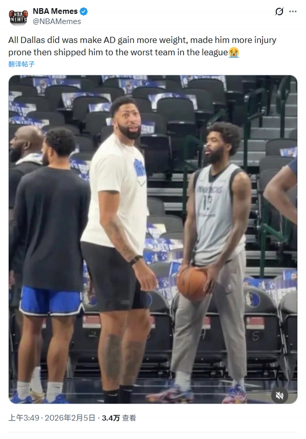 美媒调侃:“独行侠所做的无非是让安东尼·戴维斯不断增重,变得更容易受伤,然后把他甩卖给联盟最差的队。”