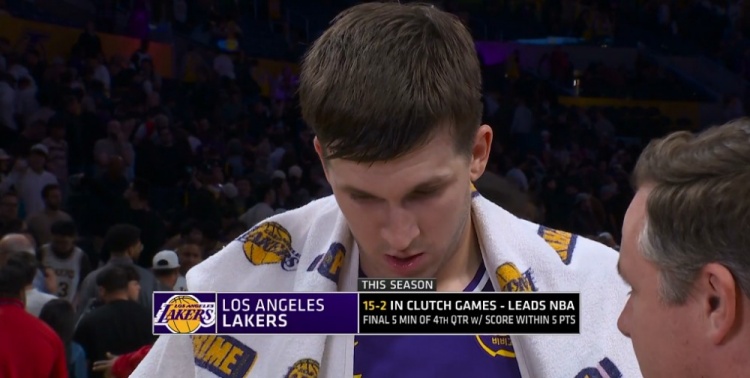 据统计,本赛季湖人在关键时刻(最后5分钟、分差小于等于5分)的比赛15胜2负,领跑NBA。