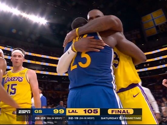 哥仨好!詹姆斯赛后分别和追梦&库里拥抱致意 和库里说悄悄话