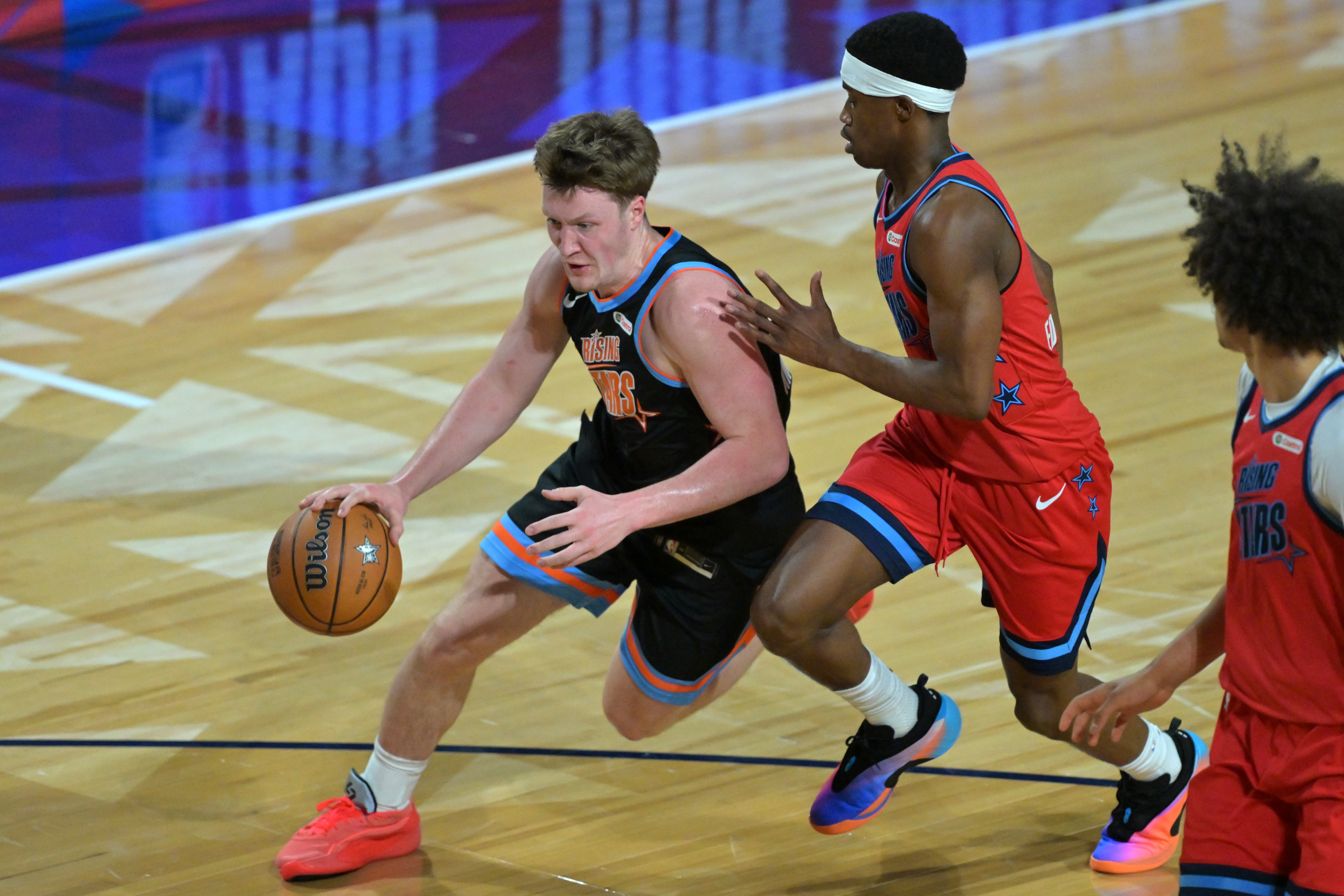 2月14日讯 今日全明星新秀赛中卡特队41-36战胜麦迪队,比赛中解说员杨健谈到了卡特队的埃奇库姆和麦迪队的克尼佩尔。“埃奇库姆很棒,但克尼佩尔目前是最佳新秀的大热门,后者的数据更好一些。”杨健表示。本赛季至今,埃奇库姆场均可贡献14.9分5.4板4.1助1.5断,投篮命中率42.3%,三分35.2%;克尼佩尔场均得到18.9分5.5板3.6助0.7断,投篮命中率48.4%,三分43.1%。