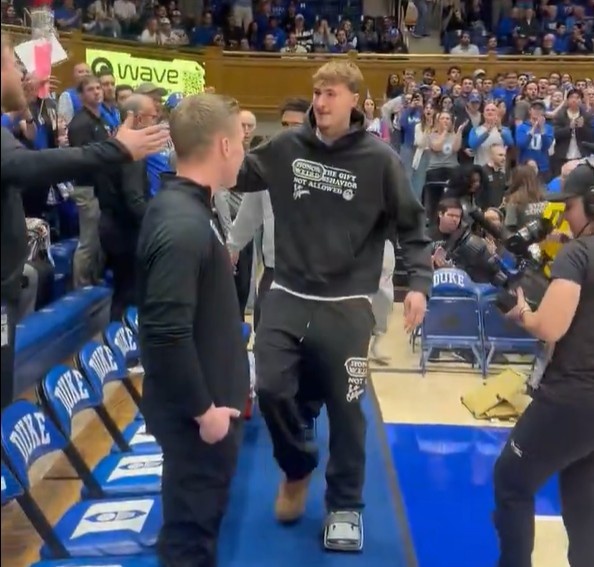 2月15日讯 今天,因左脚中足扭伤而缺席了全明星新秀赛的弗拉格回到杜克大学观战,对手为克莱姆森大学。