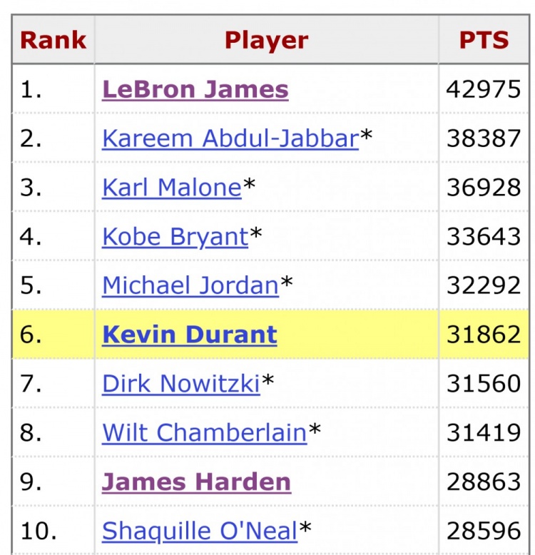 2月15日讯 火箭球星杜兰特在全明星周末接受媒体采访时,谈到了自己生涯总得分即将超越乔丹。杜兰特说:“我会说,迈克尔·乔丹在没有受伤的情况下离开了篮球场两到三年。他的得分本可以远超现在。我觉得他留下了很多遗憾。但同时,他是一名偶像,一位伟大的球员,也是我的灵感来源之一。能够接近他的纪录对我来说是不可思议的。我正在一步步接近他,这种感觉太不真实了,我无法用言语表达。”目前杜兰特生涯总得分为31862分,排名历史第六,距离第五的乔丹仅差430分 。