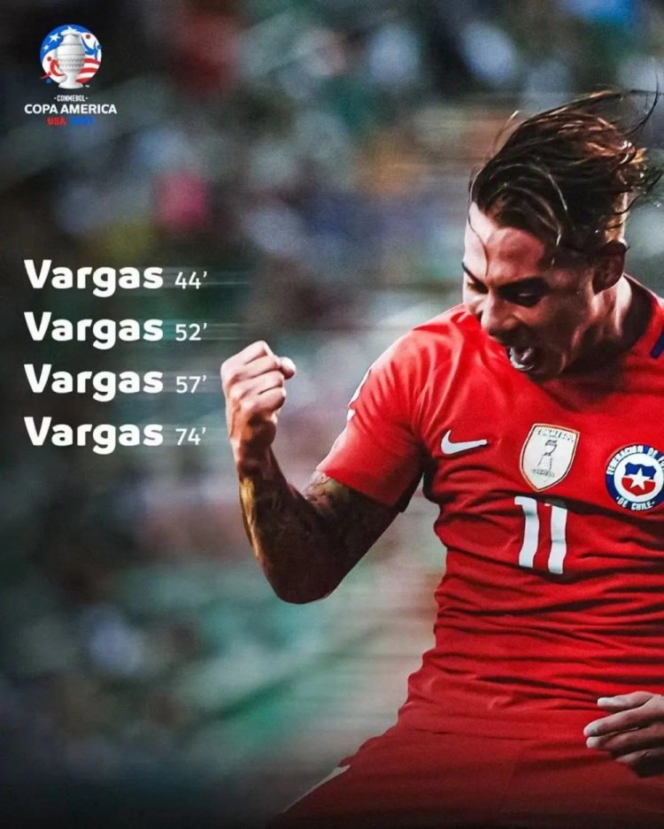 离开欧洲后,巴尔加斯在智利国家队重获新生,作为主力前锋,他是2015和2016年美洲杯的双料金靴,帮助智利首次赢得该赛事冠军。职业生涯巴尔加斯总共为国家队出场超过100次,打进40多球,被誉为“国家队世界级前锋”。