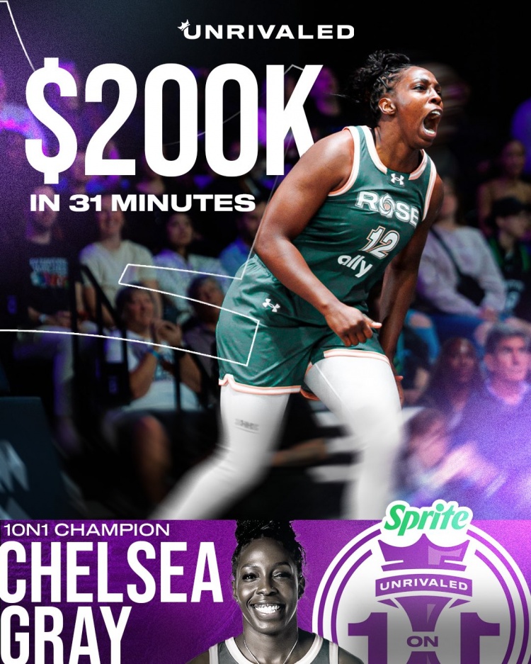 切尔西·格雷拿下Unrivaled单挑冠军 奖金20万刀 4场仅耗时31分钟