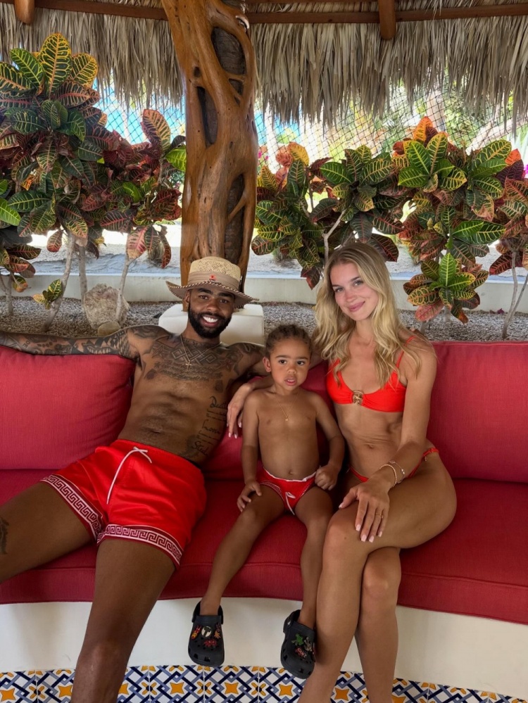 别人打球我度假!拉塞尔未婚妻晒一家三口度假照