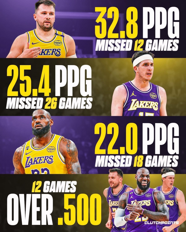 湖人队本赛季得分最高的三位球员加起来缺席了56场比赛!