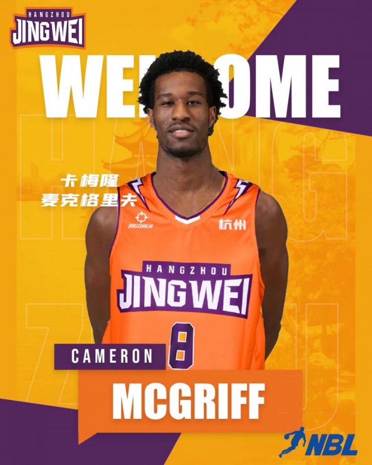 杭州经纬篮球俱乐部正式与外籍球员卡梅隆·麦克格里夫(Cameron McGriff)签订合同,他将身穿8号战袍出征2025-2026赛季NBL联赛。大年初五对阵安徽皖江龙的比赛中他将迎来自己的NBL首秀,欢迎麦克格里夫!