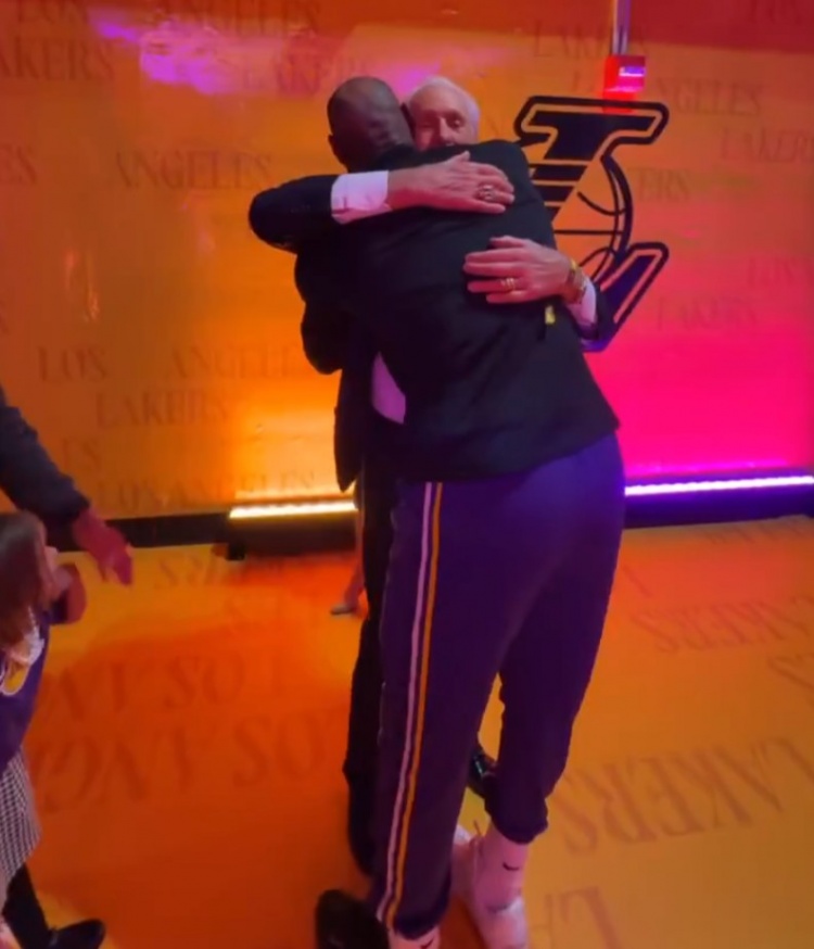 曾在热火共事四年!莱利雕像揭幕 詹姆斯赛前和他拥抱致意