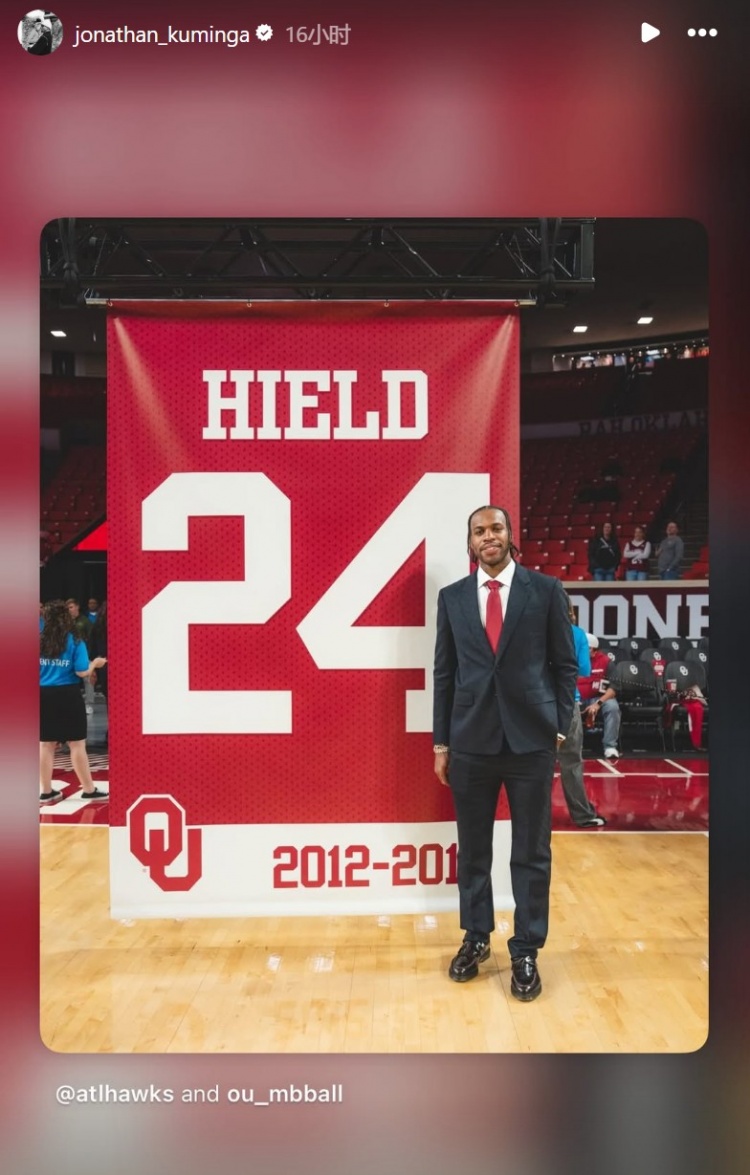 希尔德大学球衣在俄克拉荷马大学退役!波杰姆、库明加转发送祝福