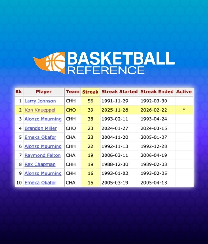 他也超越了阿隆佐·莫宁,成为夏洛特黄蜂队史新秀连续得分上双场次第二长的球员,队史第一是拉里·约翰逊的连续56场。