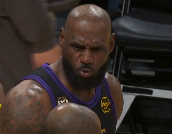 很是不解!湖人第三节最后一攻 詹姆斯接球冲筐被吹走步