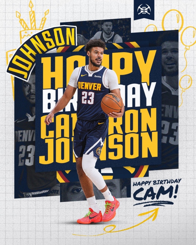 3月4日讯 今天是掘金球员卡梅隆·约翰逊30岁生日,掘金官方发布生日海报祝约翰逊生日快乐。