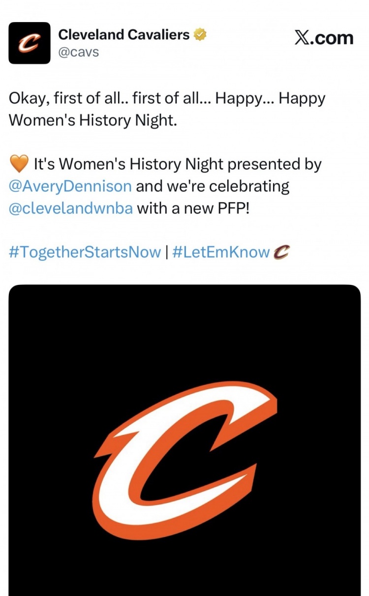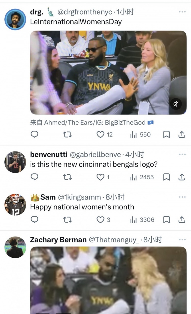 3月10日讯 今日,骑士官推晒出海报宣传今日主场以致敬女性为主题的妇女之夜。骑士官推写道:“好吧,首先……首先……祝你们……祝你们妇女之夜快乐。”骑士官推的此番宣传文案完全引用了在2024年妇女节当天,缺席比赛的詹姆斯场边坐在湖人老板珍妮·巴斯及湖人高管兰比斯夫人之间时,向这两位女性致以节日祝福的话语。大量网友也在评论区晒图指出这一点。
