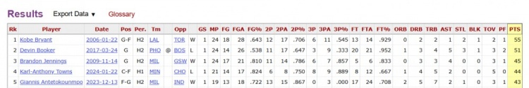 3月11日讯 NBA常规赛,热火半场76-62领先奇才。上半场,热火内线阿德巴约状态炸裂,在首节就狂轰夸张的31分,上半场打了19分钟,投篮24中13,三分球11中5,罚球14中12,砍下43分5篮板2抢断1盖帽的数据,正负值+11。据统计,阿德巴约半场狂轰43分,也追平了NBA历史(自1996-97赛季有统计以来)半场(任意半场)第5高的得分,也是NBA历史上半场第二高的得分!NBA历史半场得分Top5:科比55分、布克51分、詹宁斯45分、唐斯44分、字母哥&阿德巴约43分