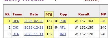 据统计,单场153分创2025-26赛季联盟第二高,仅次于掘金的157分。