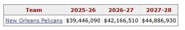 3月14日讯 今天,薪资专家Bobby Marks分析了锡安的合同情况。据悉,由于出战场次达到51场,锡安下赛季的保障薪资将从1690万美元提升至2530万美元。在本赛季开始之前,他在2026-27赛季高达4220万美元的薪资尚无任何保障。锡安本赛季及后续2个赛季的薪资如下:
