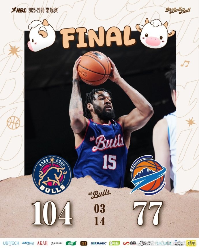 末节决战,球队外线攻势不减。董健两度突施冷箭,琼斯接连助攻厄特尔与卢艺文命中三分,随着唐才育外线同样得手,球队凭借稳定的三分火力锁定胜局,港将杨瑞鸿替补登场贡献一记精彩的持球撤步三分,全场比赛结束,香港金牛104-77战胜焦作文旅。