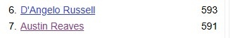 3月15日讯 NBA常规赛,湖人半场61-50领先掘金。上半场比赛,里夫斯进攻端表现不错,尤其是开局连续外线发炮首节就拿到10分,他出战19分钟,8中5,三分3中2拿到12分2篮板1助攻1盖帽,正负值+12。至此,里夫斯湖人生涯三分命中数达591个,追平拉塞尔并列队史第6。本场比赛前数据