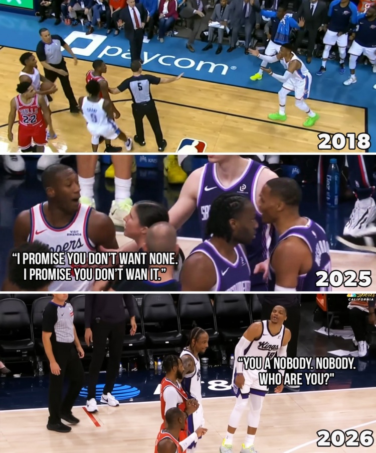 比赛中威少和邓恩发生冲突并怒喷对手,两人恩怨由来已久,美媒晒出了两人生涯的三次冲突。