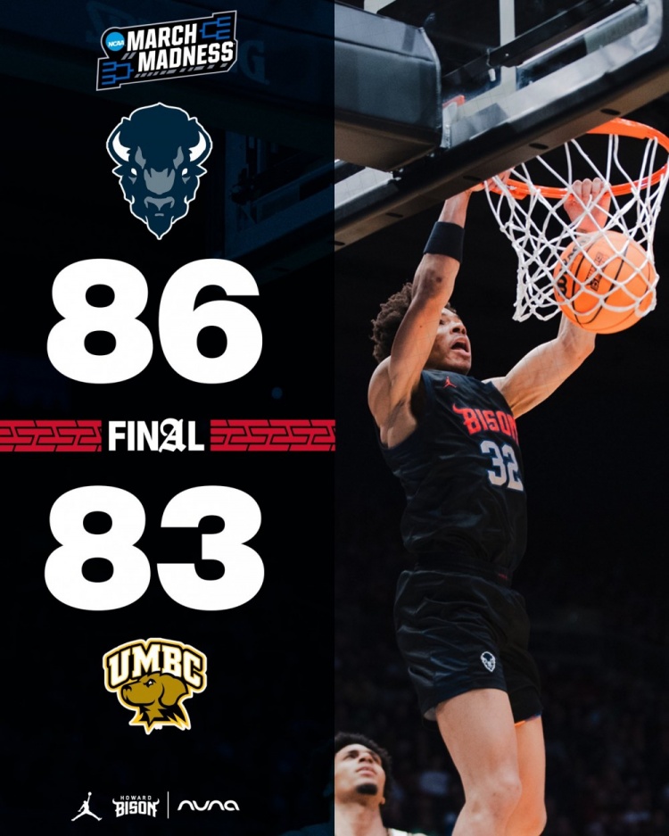 3月18日讯 NCAA“疯狂三月”外卡赛,霍华德大学86-83击败马里兰大学巴尔的摩县分校,晋级64强。值得一提的是,这是霍华德大学队史63年疯三首胜,首次进入首轮(64强),此前他们曾四次冲击全部以失利告终。64强赛他们的对手是赛区头号种子密歇根大学。杀死比赛的关键一球