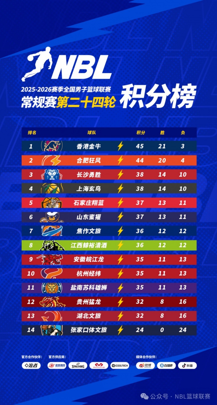 2025-2026赛季NBL常规赛第二十四轮比赛于3月17日全部战罢。