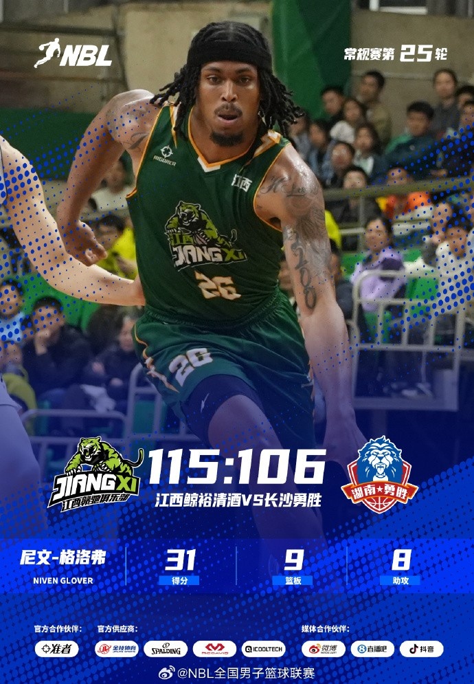 本场生死战江西鲸裕清酒全程把控比赛节奏,首节便火力全开抢占先机,早早建立领先优势,长沙勇胜虽全力追分仍难扳回;次节双方持续高强度攻防,江西鲸裕清酒依旧稳扎稳打,始终保持领先态势;第三节长沙勇胜发起强势反扑,试图缩小分差,江西鲸裕清酒全队顶住压力,牢牢守住场上优势;末节长沙勇胜全力追分发力,江西鲸裕清酒凭借此前积累的优势,配合格洛弗的稳定输出,最终以115-106稳稳锁定胜局。 全场尼文-格洛弗状态拉满,轰下31 分 9 篮板 8 助攻的准三双数据,串联全队 + 攻坚得分双向在线,是球队取胜的绝对核心!
