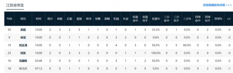 广东:张皓嘉8分2篮板1助攻,张文逸6分1篮板。