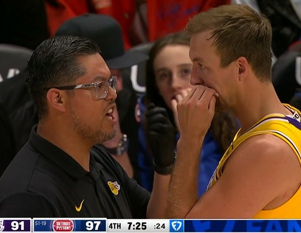 够拼!肯纳德争夺球权被许尔特肘到下巴流血 随后下场接受治疗