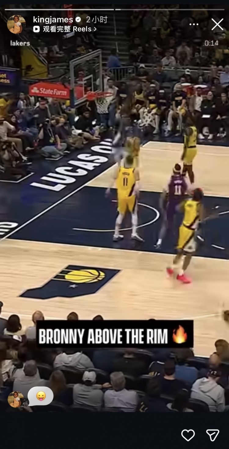 3月26日讯 今日,湖人137-130客场击败步行者。赛后,湖人球星詹姆斯更新了Instagram Story动态。