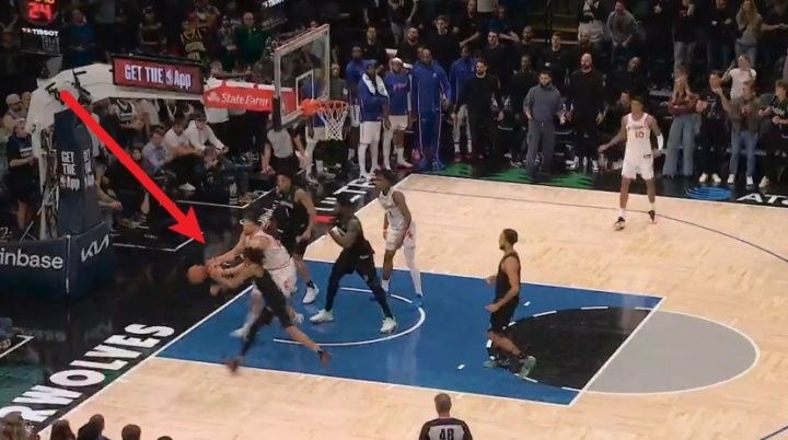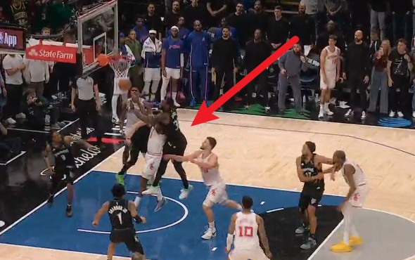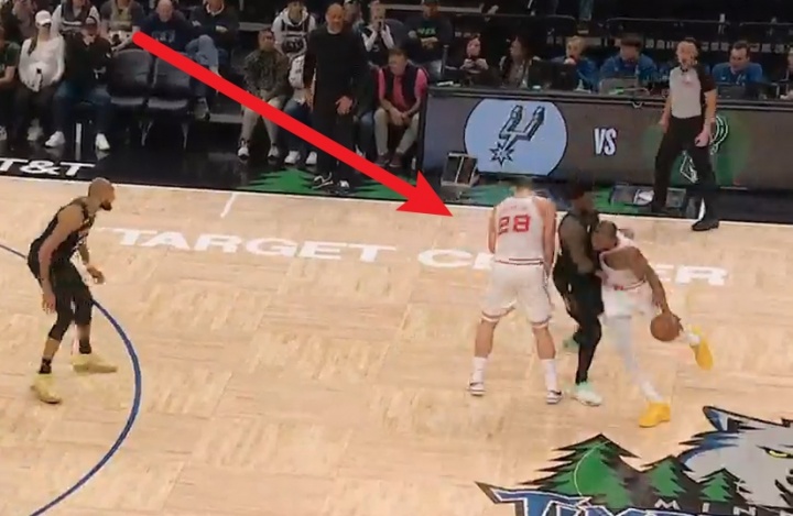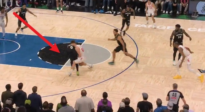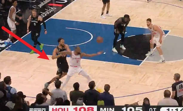 4、加时1分08秒(火箭108-105森林狼),迪文岑佐在与申京争抢球权时,脚踢球得到球权。应吹罚迪文岑佐脚踢球为例,但裁判并未吹罚——森林狼获利。