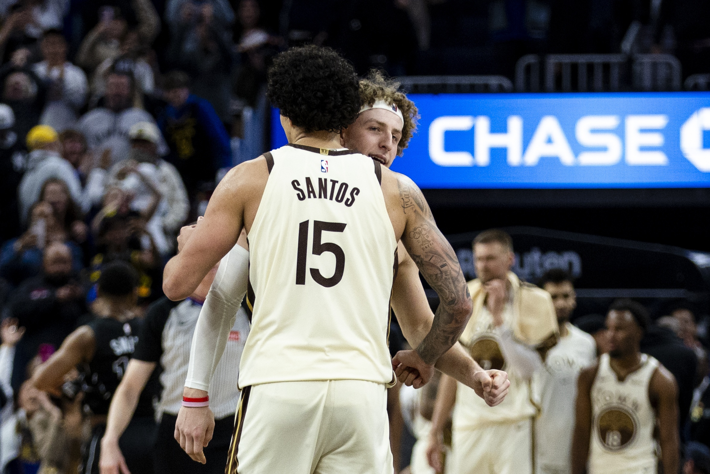 本场比赛,勇士前锋桑托斯表现出色,出场33分钟12投8中,三分5中3、罚球9中8拿到27分4篮板4助攻,正负值+5。