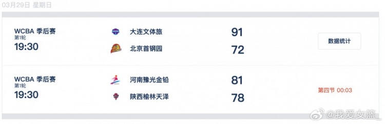 大连文体旅 91-72 北京首钢园,大连女篮三人得分上双,丹塔斯29分11篮板,泰勒18分,邢金博12分。北京女篮仅两人得分上双,詹姆斯19分14篮板,郑茗13分。