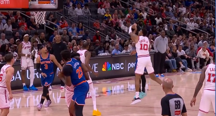 很值!布伦森造成三分犯规 乌度卡挑战成功取消犯规改判争球