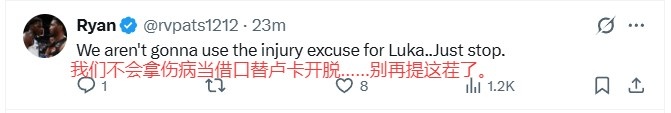 美网友议东契奇受伤:湖人要凉了 落后30分还上首发?肥仔没MVP咯
