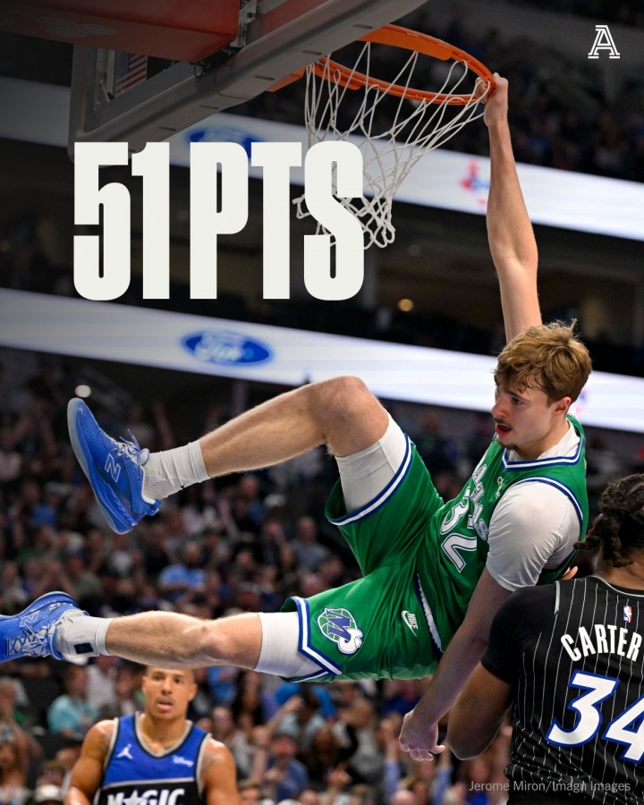 NBA常规赛,独行侠主场127-138不敌魔术。比赛第四节,弗拉格强打得手拿下本场个人第50分并造成罚球(随后罚球命中拿到51分)。GIF-弗拉格强打2+1拿到50分51分是弗拉格个人的生涯新高!此前他的单场最高分是49分。