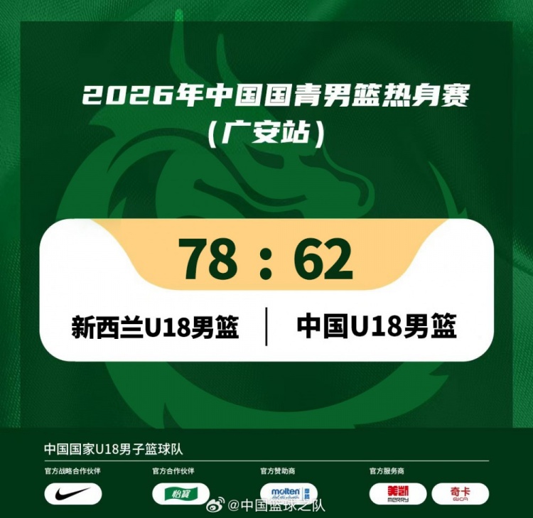 4月5日讯 2026年中国国青男篮热身赛(广安站),中国U18男篮78-62战胜新西兰U18男篮。