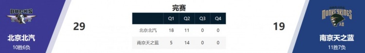 北京:张鹏珲12分1篮板1盖帽,翟晓川5分1篮板1助攻。