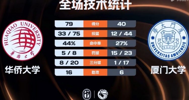 次节上来,兰皓翔内线打成后李元造杀伤两罚再追分,但随后的9分钟厦门大学形如梦游,不仅连续出现失误还一分未得,虎建国各种抢断,华侨大学各种反击,单节25-4净胜21分,半场华侨大学40-16领先厦门大学24分。