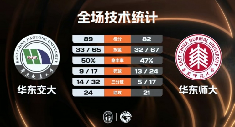 末节比赛,华东师大依旧没有放弃,在李奕男拿到两分后分差仅剩1分,这一次他们依旧未能把握住反超的机会,华东交大此后一波小高潮重新稳住局势,最终华东交大89-82力克华东师大。