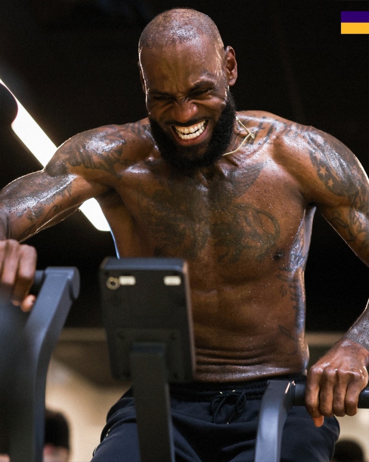 咬牙坚持!湖人官推晒全队体能训练照:季后赛强度