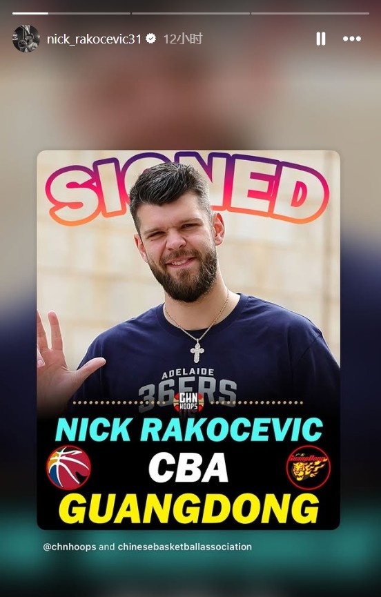 4月16日讯 前CBA外援拉科塞维奇昨晚更新社媒,转发了自己将加盟广东男篮的报道。
