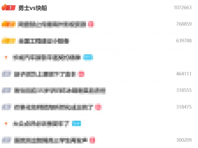 热度拉满!“勇士VS快船”词条登上微博热搜榜第一位