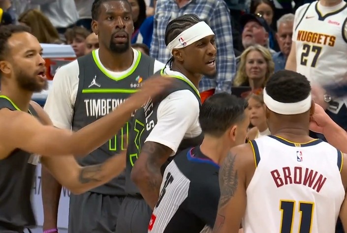 多余动作!麦克丹尼尔斯篮下直接将约基奇推飞2米远吃T