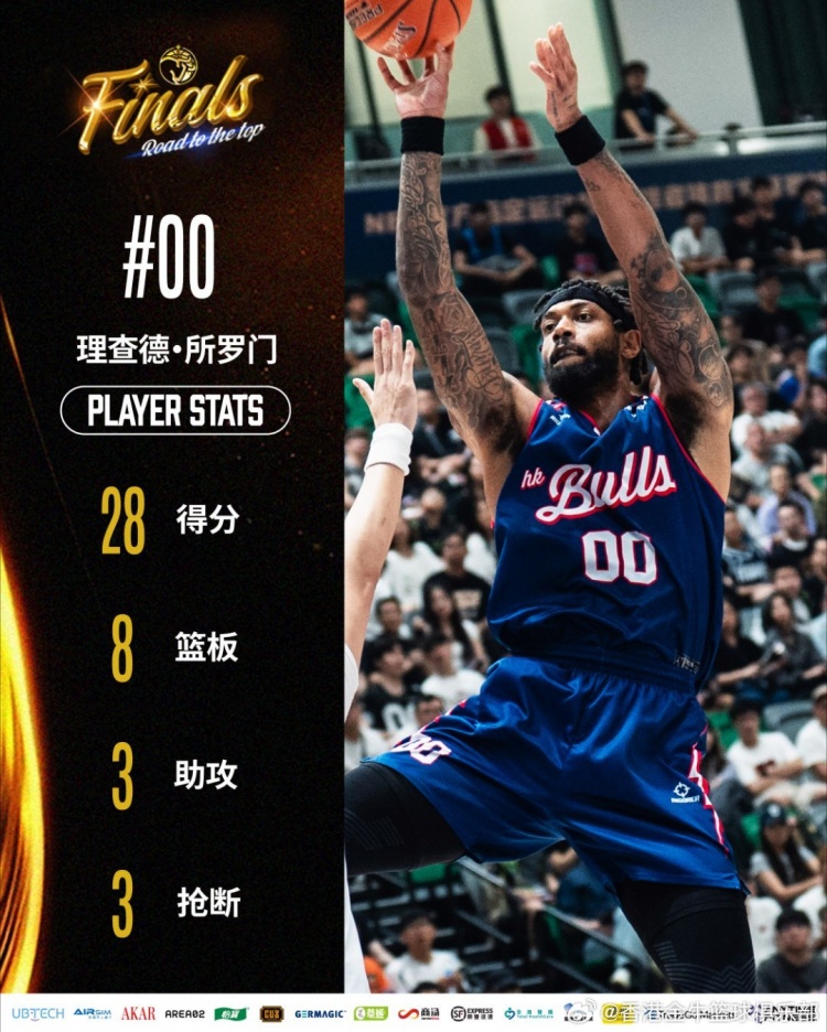 香港金牛今晚大比分战胜上海玄鸟,总比分2-0夺得总决赛赛点。此役全队4人得分上双,其中所罗门连续送上精彩暴扣,砍下全场最高的28分,另有8篮板3助攻3抢断;孙晨然首节独揽7分,带领球队迅速进入进攻节奏,全场贡献11分2助攻1篮板1抢断;阿诺斯克和庞兹同样发挥出色,分别得到23分6篮板3助攻和23分6篮板6助攻2抢断。